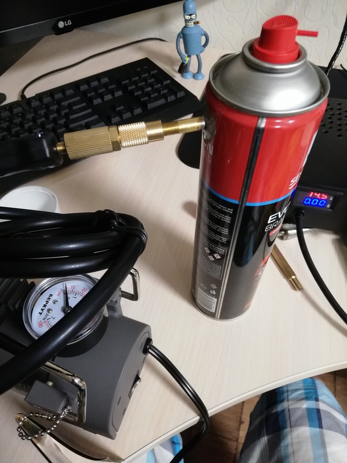 Теперь нужен насос для проверки герметичности пайки. Я накачал 2,3 атм продержав сутки, давление никуда не ушло - это хорошо.