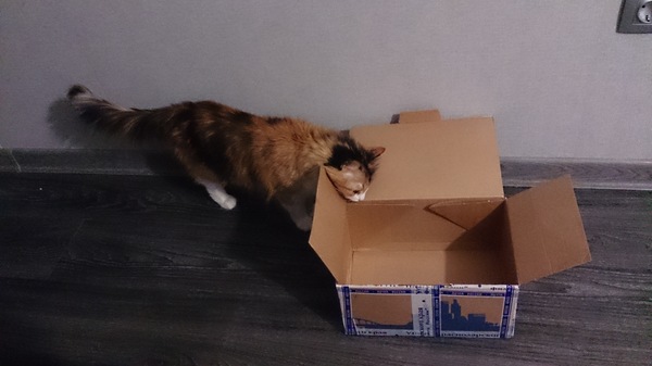 (ну и куда же без котика, пост-контроль проверил коробку - подозрительная!)