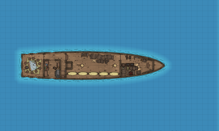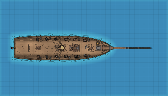 Вид на верхнюю палубу (отдельный привет @Voron53rus, я таки нашел подходящий ящик для ядер):