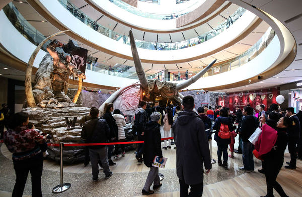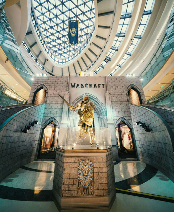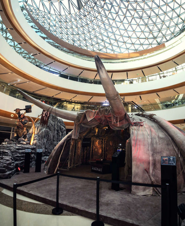 Студия Legendary, известная своими крутыми картинами, установила огромные экспонаты, рекламирующие одну из картин нынешнего года - фильм Warcraft.