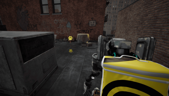 Привет, друзья! Хочу поделиться с вами кое-чем, над чем я сейчас работаю. Это прототип игры про робота-паркурщика, который занимается доставкой еды для котиков и прыгает по крышам!