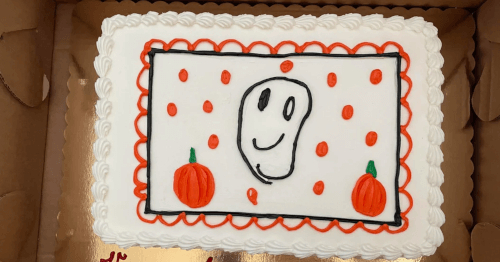 Мальчик захотел торт с черепом. Ребёнок даже нарисовал эскиз торта. Вот только таланты юного художника далеки от совершенства, а потому череп получился весьма условным. И хотя родители, придя в пекарню, обратили внимание кондитеров на то, что на торте должен быть череп, вместо этого на лакомстве появилась точная копия рисунка, нарисованного маленьким мальчиком.