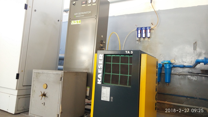 Также не обойтись без осушителя воздуха(справа) и азотогенератора для подачи в камеру сушки(слева)