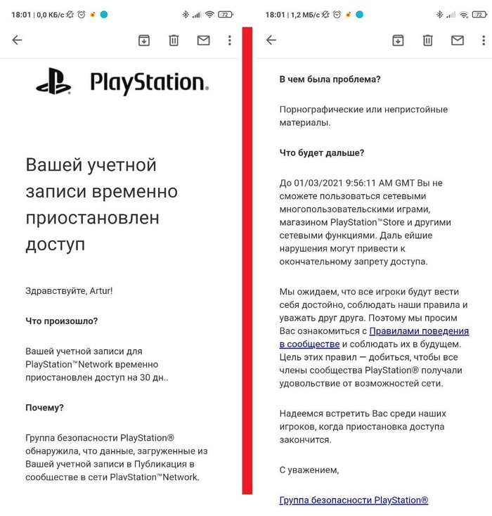 Пишет мне как-то друг, дескать, "мне тоже забанили PSN". Присылает скриншот, вот этот: