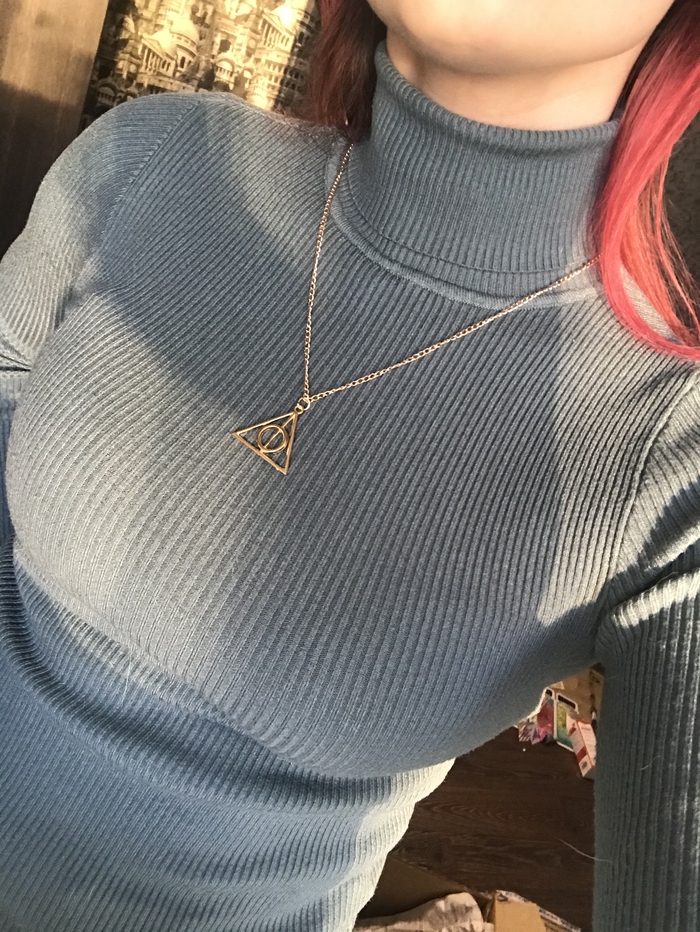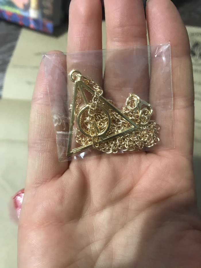 Знак даров смерти! Выглядит очень элегантно, я сразу надела. Я не знаю, как можно даже в таких деталях продумать подарок.