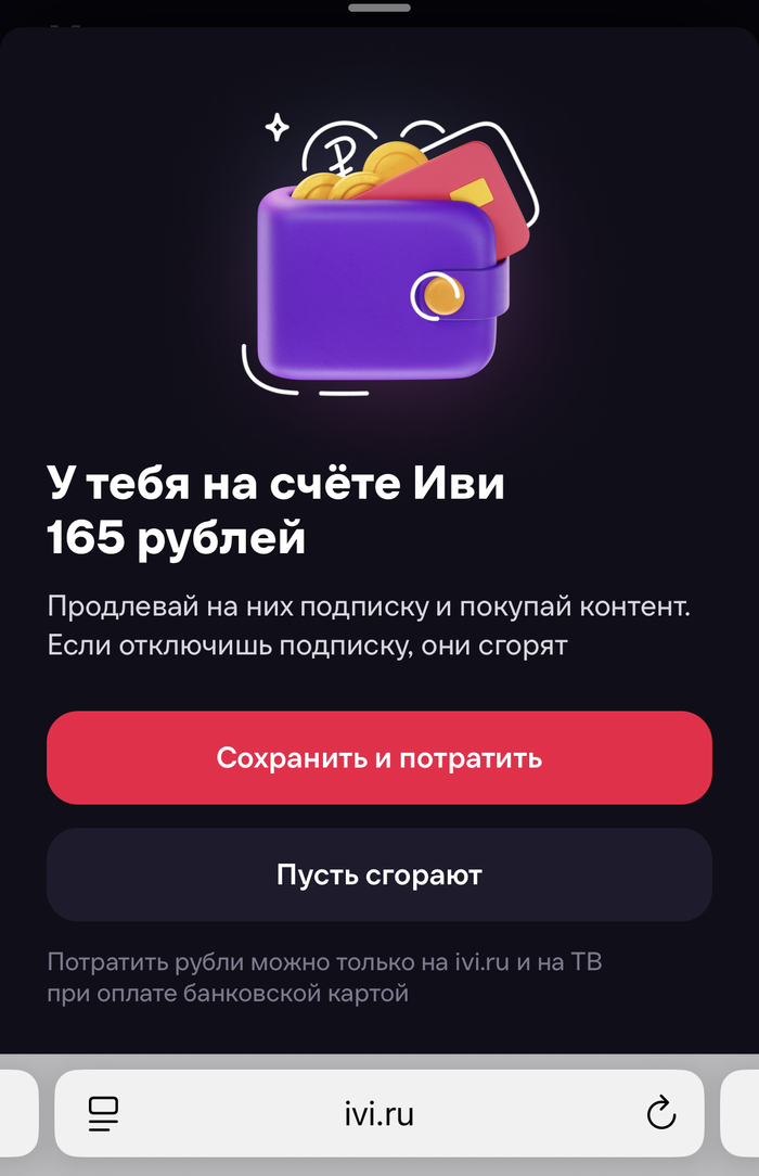 Списались в очередной раз с меня деньги за подписку на кинотеатре ivi.ru