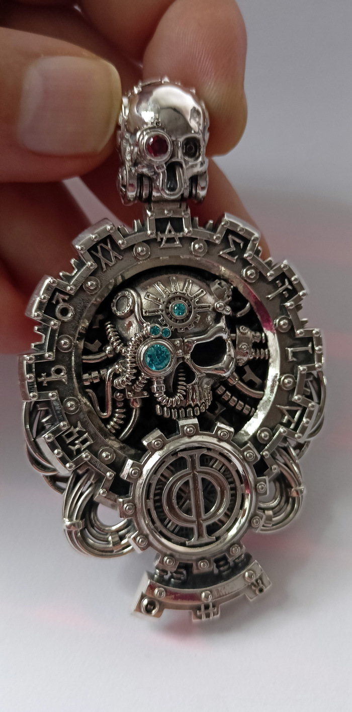 Здравствуйте . Почти завершил изготовление изделия Адептус Механикус MK 3 . Сам кулон состоит 10 отдельных частей . И при его изготовлении был отдельный котёл в технологическом аду ) Осталось поставить в него камни и он будет полностью готов . Но уже на данном этапе есть на что посмотреть .