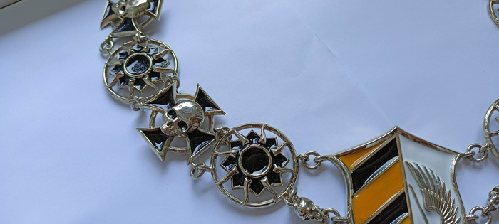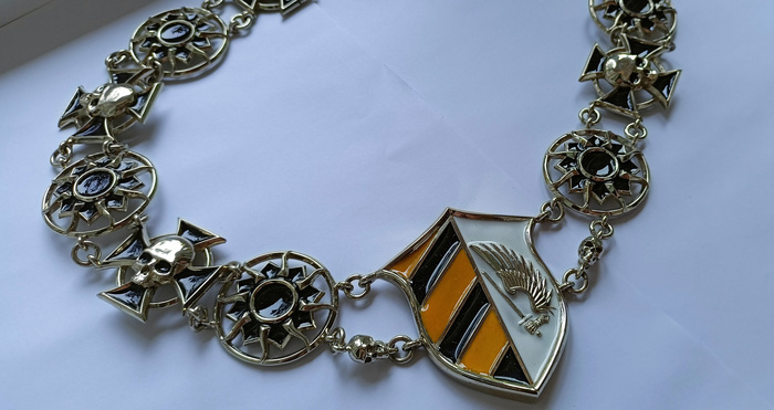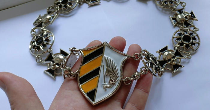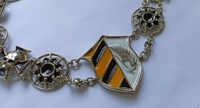 Здравствуйте . Доделал очередной масштабный проект .Объем работы я как то сразу не учёл ) Рыцарская Цепь С Личным Гербом . Вес примерно 350 грамм .Длина 50 см . Фото и Видео .