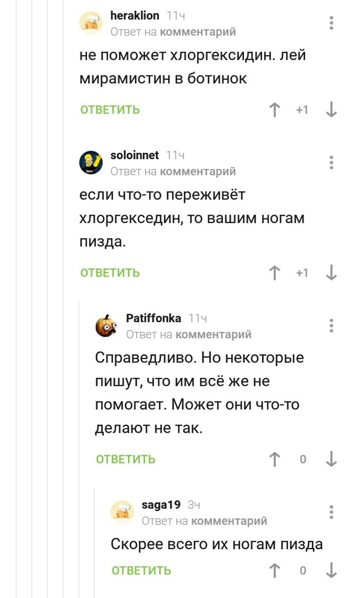 25 IceShade Старая добрая логика на пикабу 7 лет назад #comment_111395353 Показать полностью 1 Комментарии на Пикабу Ноги