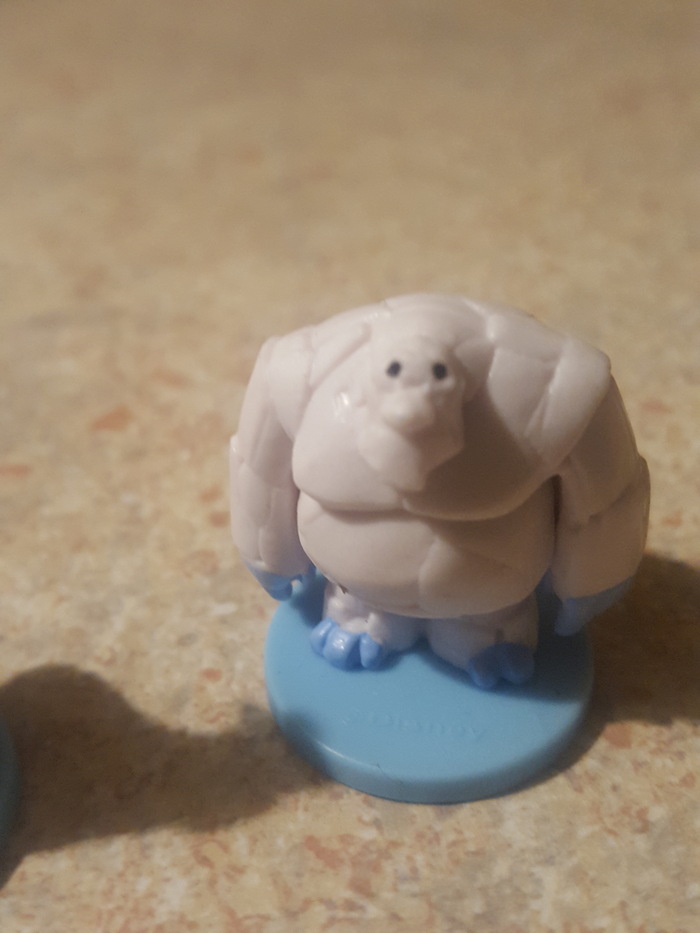 Череп человеческий, в глазницах глазные яблоки с очень расширенными зрачками. Брови выполнены из колючей проволоки, верхние ресницы из гвоздей и саморезов, нижние из вязальной проволоки. Челюсть распахнута в крике. Верхние клыки из перфораторов, зубной ряд из строительных мастерков, нижние клыки из болгарок, зубной ряд из цангов. В центре рта, в горле расположен венец от миксера.