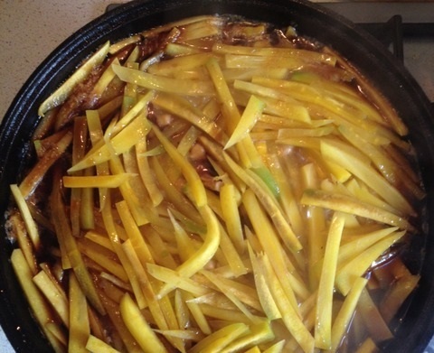 Морковка желтая (её так же можно купить на доргомиловском). Режем её крупной соломкой. Никаких тёрок, блендером и прочего, только нож!:)