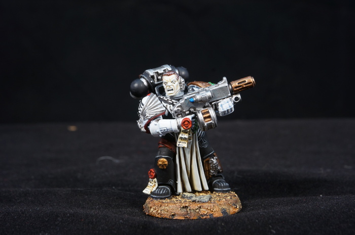 А это ветеран сержант. Специально крашен чтобы таскать Nihilus, специальная снайперка из 7ой редакции. Как она выглядела я нигде не нашел, так что на ней просто +1 печать и надпись на стволе Nihilus (которая увы не видна). Ну и орчий череп на причинном месте, чтобы позлить основного соперника))