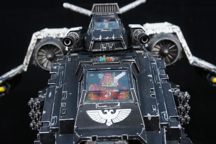 К сожалению сфотографировать салон не получилось, как не получилось это сделать и с десантным отсеком. Но поверьте все внутренности прокрашены. Технодесантиник и сервитор тоже 100% прокрашены. Их сиденья и приборы прокрашены.