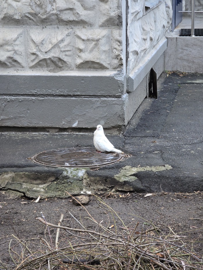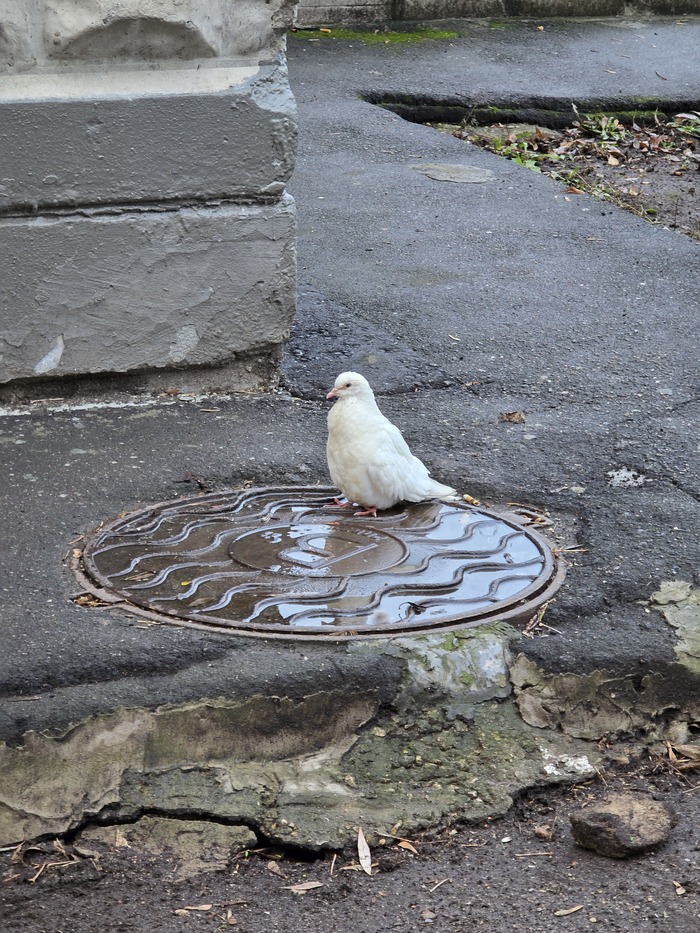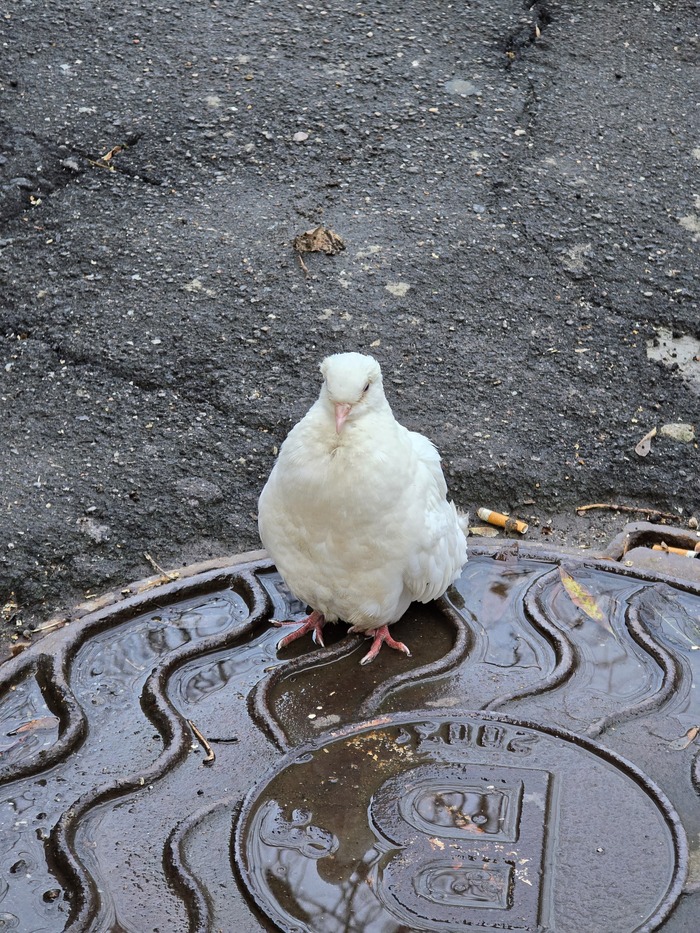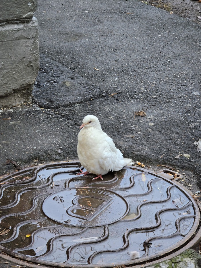 Добрый день! Сейчас у подъезда увидел белого голубя, явно не дикий. Белого цвета и с пышной грудкой. На лапке виднеется кольцо. Похоже его кто-то потерял.