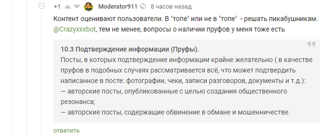 Модератора, данные факты не убедили. В ответ от него я получил: