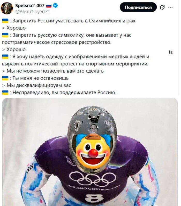 1656 Ignatbrat Политика В своём стиле 11 часов назад Источник 1, 2 и 3 Показать полностью 1 Скриншот X (Twitter) Украинцы Политика Бред Идиотизм Русофобия Лицемерие Двойные стандарты Олимпийские Игры 414 76 17 12 2 1 Ещё 1