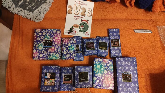 Под конец распаковки, на которую ушло почти два часа, я был наполнен чувством радости, как ребенок, которому подарили все те игрушки, которые он так давно хотел. Я потом еще час не мог уснуть ночью, хотелось встать, всё включить, всё попробовать, со всем "поиграть", но надо на работу, поэтому спать. на следующий день я бежал домой, чтобы уделить время каждому подарку, посмотреть как оно работает, и попробовать в деле. Счастью нет предела! Как и моей благодарности маленькому эльфу помощнику! прошло уже несколько дней с момента вскрытия посылки, а я до сих пор хожу радостный и воодушевленный. Часть из этого уже опробовал в деле, и это потрясающе. Паяльник и фен шикарны, приставку беру в руки при любой свободной минуте. Огромное спасибо тебе @darkfell, за все подарки, за сохранение веры в новогоднее чудо! Отдельное спасибо за то как всё было упаковано, за все наклейки, которые я так понимаю сделаны вручную(я вырезал их в обертки, чтобы сохранить), цитаты из игр, и конечно увлекательную игру в угадайку. До сих пор нахожусь в шоке от подарка, от того что там было всё, что действительно нужно, и чего действительно хотелось!