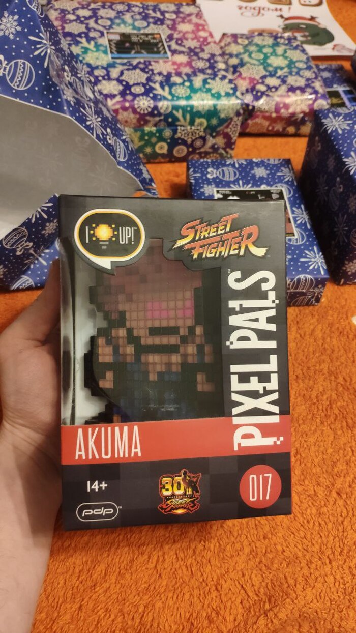 Во тьме ночной.. Да это же клятва зеленого фонаря! Что может быть с ним связано.. ну конечно же фонарь...фонарик.. лампа.. не то.. может быть это ночник? точно! ночник! Переворачиваем упаковку(к сожалению нет отдельного фото) и там нарисованы бойцы Street Fighter. Ночник с одним из персонажей? Ладно, вскрываем... и да! небольшой ночник с Акумой из уличных драк!