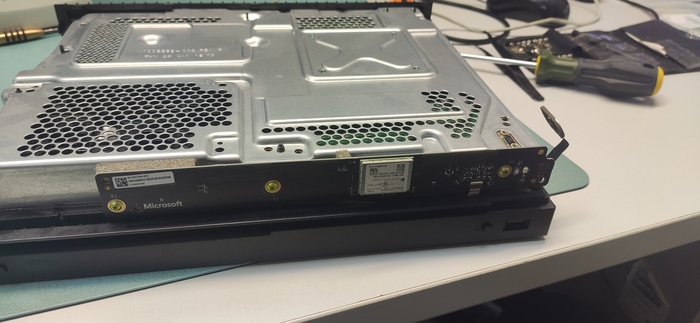 Вот так она висит на заставке бесконечно,не будем терять время выкручиваем 6 винтов ,отсоединяем шлейфа и достаем плату.