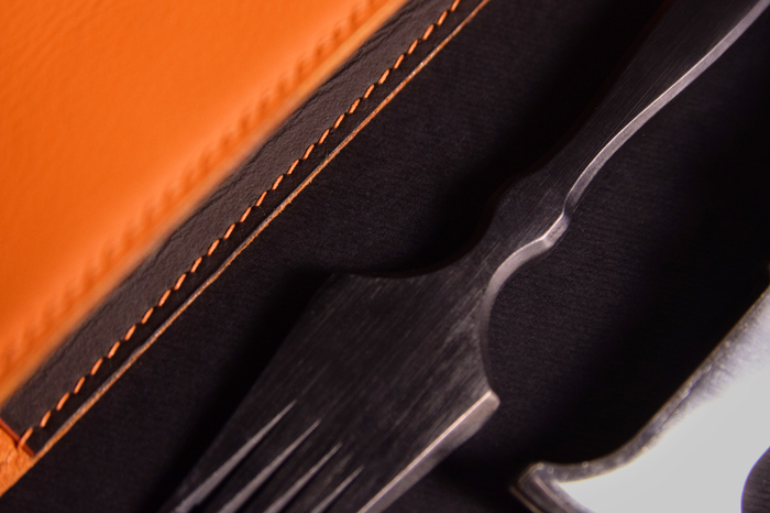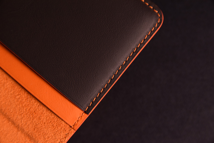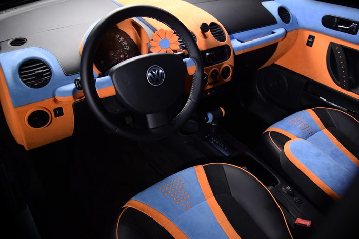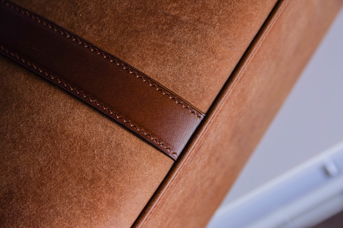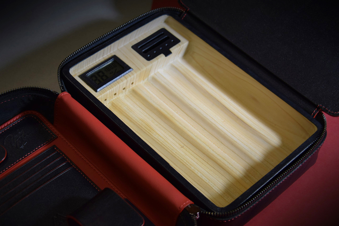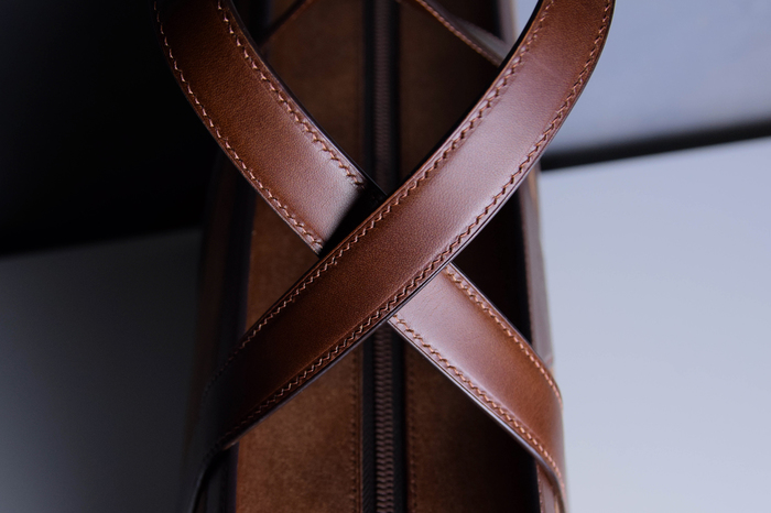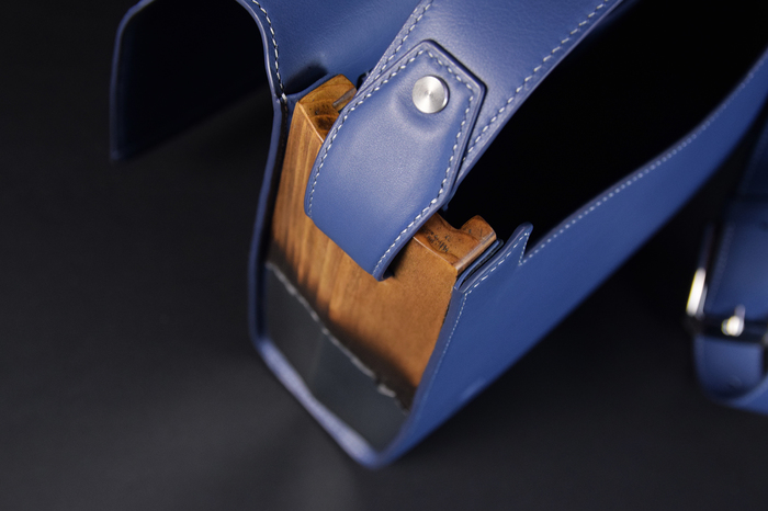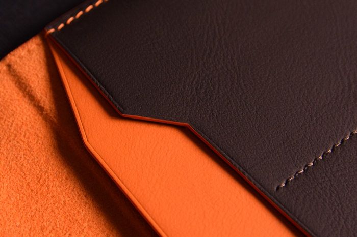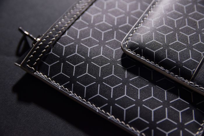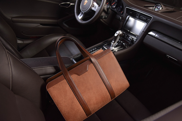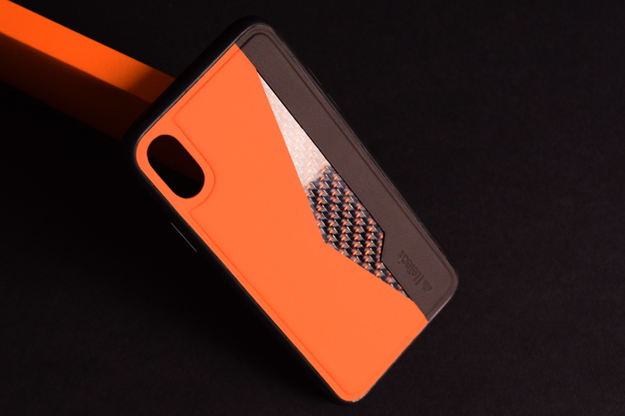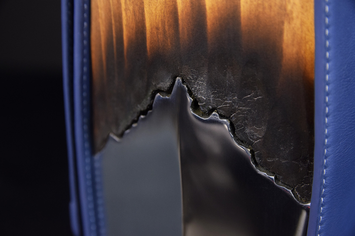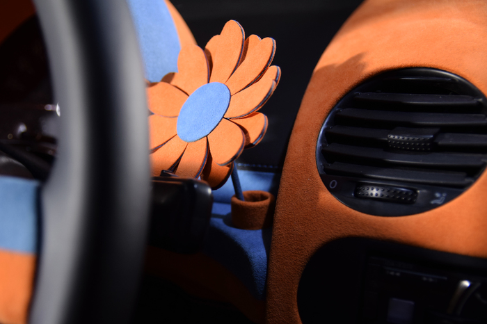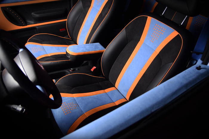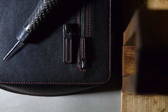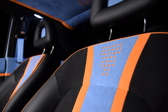 Основной материал - натуральная кожа из коллекции Lamborghini. Для подкладки использовалась оригинальная алькантара. В качестве декоративного элемента выступил карбон с очень интересным плетением.