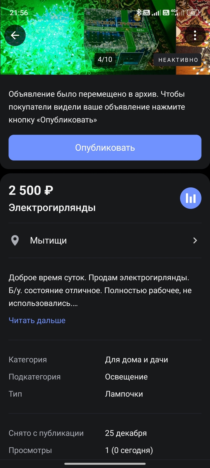 Была одна продажа по Юле, гирлянды. Год лежали. Продал. Думаю, дай вылажу остальные, дорогие, уличные. И не только. Несколько видов. Сделал фото, описание. Вроде ьы выставились. Но нет! Треьуют оплату через пару часов. Без объяснения причин. Авито так же делало, но почемуто на авито прошло, а на юле требуют оплату. Я знаю, что на авито есть ограничение на количество объявлений в категории, и то, собаки, режут, хоть и пишут причину. У юлы этого нет!!! Продал. Выложил, а они посчитали, что дай денег. Дай, дай, дай. Как с такими быть?