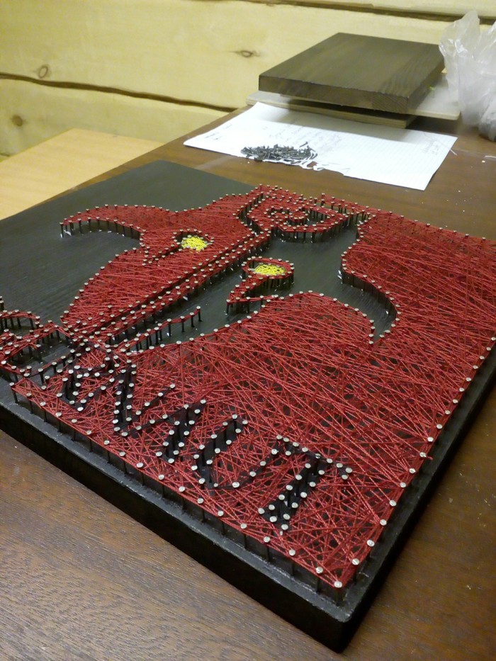 Забил около 3х тысяч гвоздей, сколько метров ниток ушли даже не знаю, не мало.