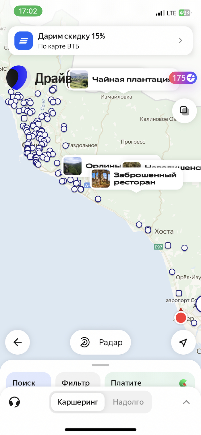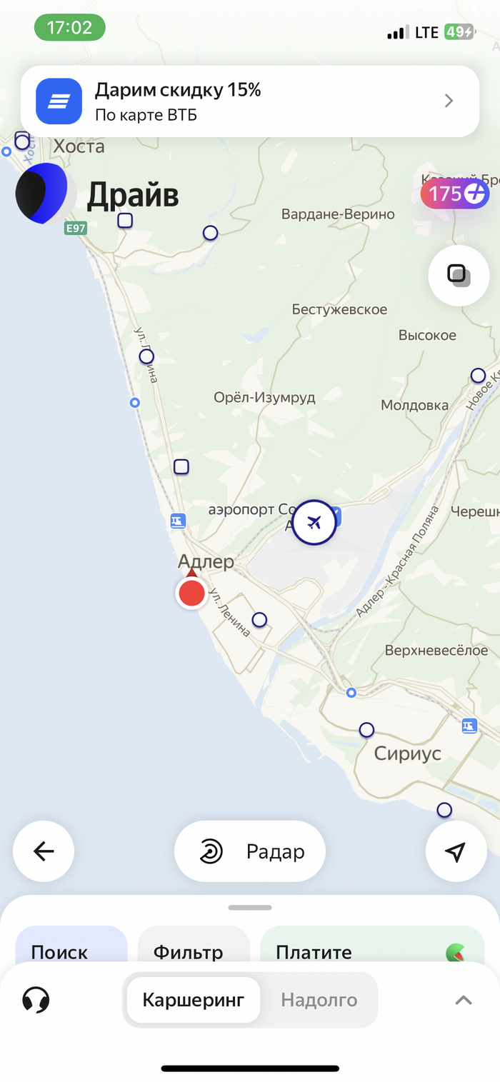 Чет пришло лето и все тачки укатили в центр Сочи. Что бы взять машину приходится или пердохать до нее теперь пол часа, так еще и дежурить все каршеринги.