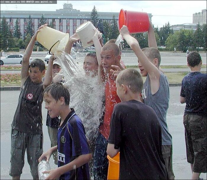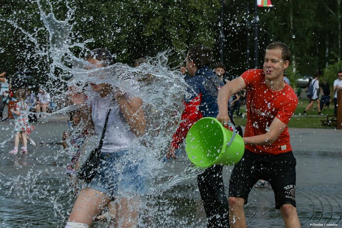 Погода стоит отличная, я только что вернулся с улицы. Я проходил мимо многоэтажных домов и в меня не бросили ни одной капитошки! Я не видел ни одного человека с водным пистолетом или ведром или с сосиской! На улицах сухо... Что же стало с нашим праздником?!