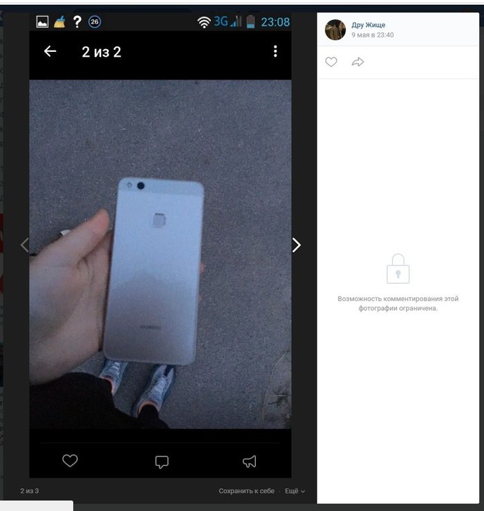 Вечером 8 мая я, моя девушка и ее мать совершали прогулку с собаками по микрорайону Славянка в Санкт-Петербурге. Я вел большую собаку на поводке, время от времени играя с ней: бегал вместе с ней, бросал палку, как обычно играют с собакой и из-за этого я метров на 100 ушел вперед от девушки и ее матери. В очередной раз, когда мы с псом побежали вперед я не заметил, что за стоящей на улице лавочке сидел белый лабрадор. Так как лабрадор не был пристегнут на поводок, собаки сцепились. Лабрадора выгуливали парень с девушкой и они как-то очень вяло отреагировали на сцепившихся собак, и я принялся оттаскивать пса, но разнять собак удалось не сразу.Оттащив собаку, я ушел еще дальше вперед и стал дожидаться подругу с матерью. Они ускорили шаг и быстро подошли ко мне, чтобы убедиться, что с нами все в порядке. Пройдя еще чуть дальше, я обнаруживаю, что мобильный телефон из кармана моей куртки исчез, о чем я сообщаю всем присутствовавшим, а они говорят, что когда спешили ко мне сразу после ссоры собак видели, как парнишка – хозяин собаки- поднял с земли телефон, но как-то не придали этому значения, да и не подумали, что это мог быть мой телефон. Мы вернулись назад на место происшествия, но как и следует ожидать никого там не было, и ребятки вместе с своим псом скрылись. Звонки на телефон естественно ничего не принесли, а вк показал нам, что мой профиль был онлайн около получаса назад, как раз после эпизода с собаками.