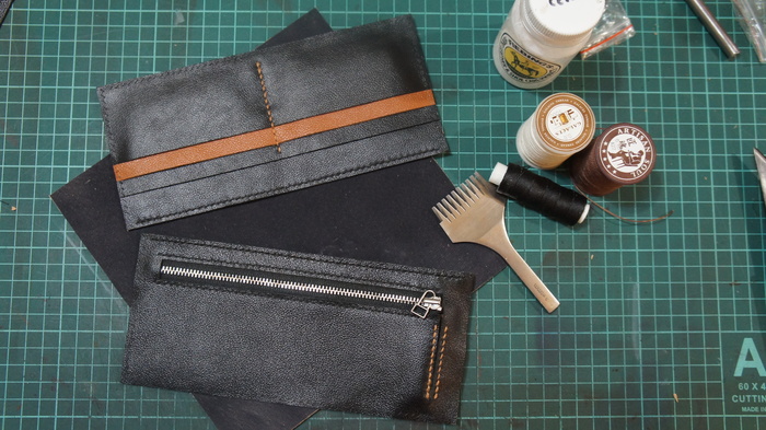 Пост будет и с фотками готового изделия, и с фото процесса и некой ретроспективой, потому что один подобный бумажник я уже делал, даже по одному почти эскизу. Вот и сравним, так сказать, иду ли я вперёд, или на ноге висит огроменная такая гиря и топчусь на месте.