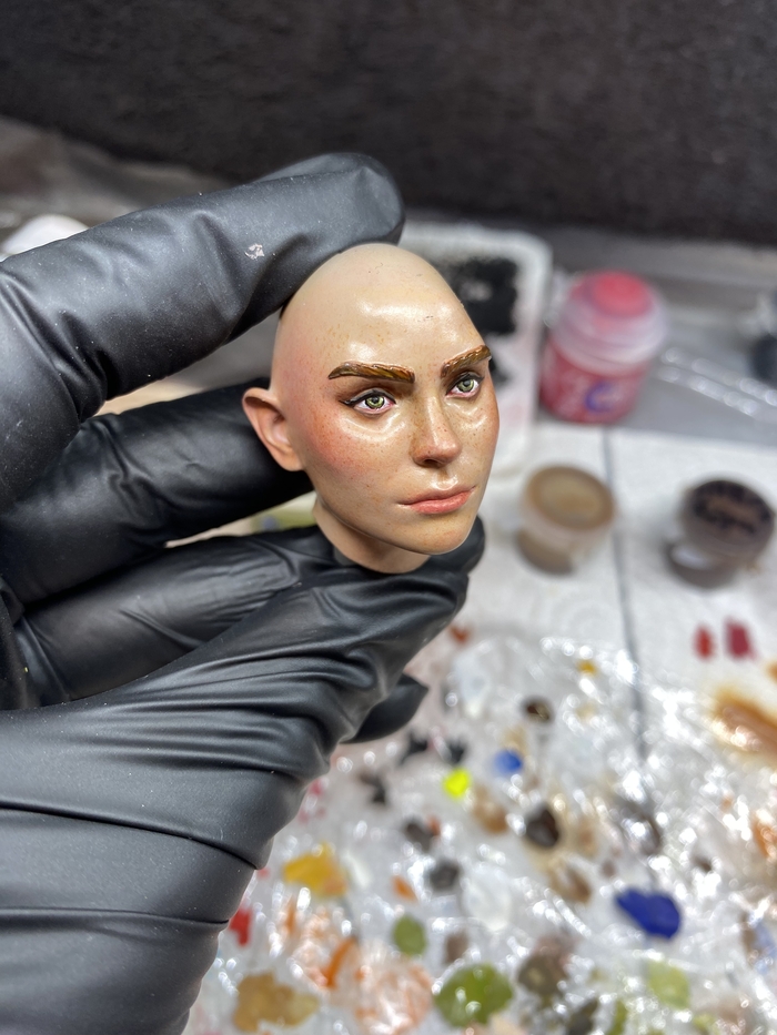 При покраске стояла задача сделать максимальное отсутствие румянца, бледный тон кожи, не слишком насыщенные цвета губ и языка.
