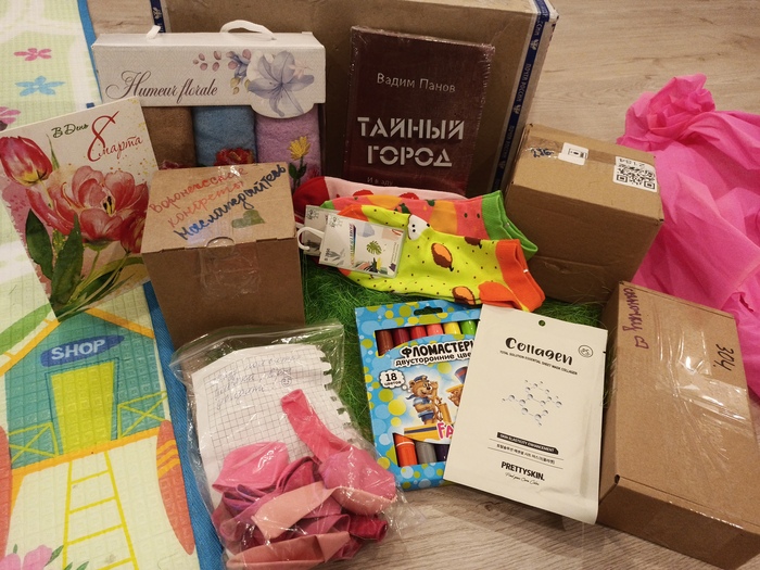 Все съедобное уже съедено, остальное пущено в дело. Открытку спрятала, буду перечитывать в одинокие дождливые вечера) Спасибо!