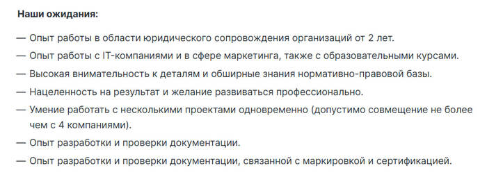 - оффер со всеми условиями трудоустройства (пятидневка, часы работы, зарплата и т.д.);