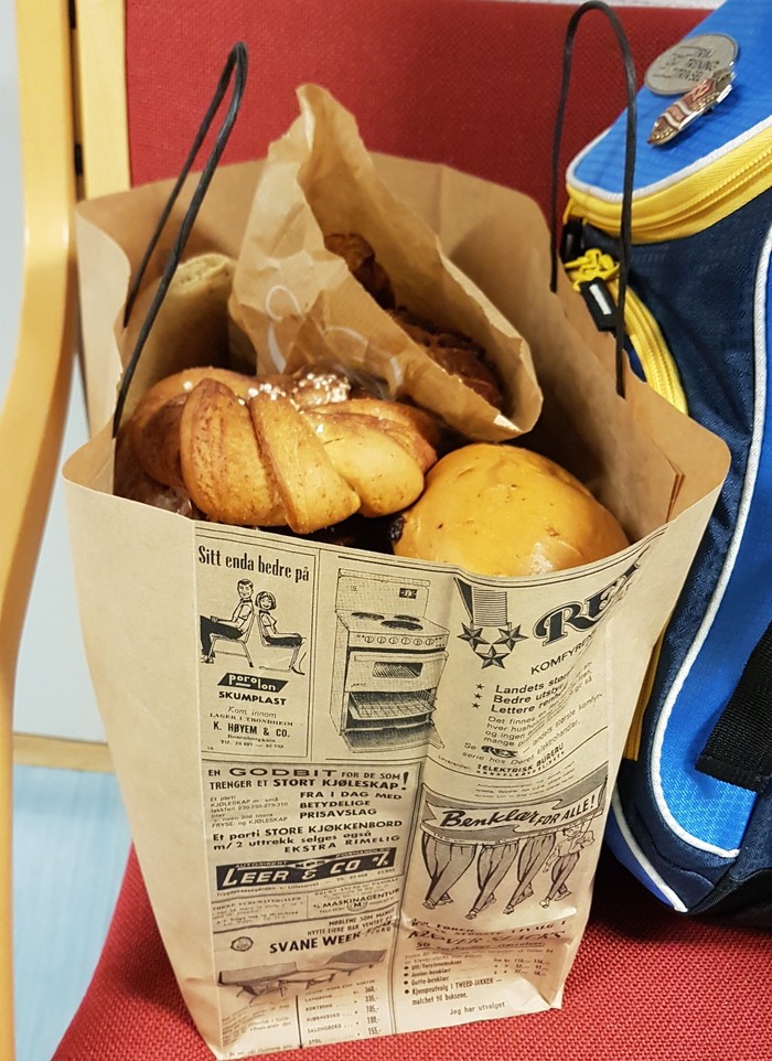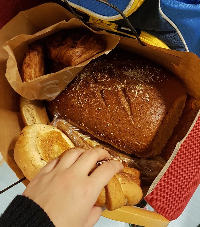 - булочная выкладывает пару позиций "волшебный пакет со вкусняшками" за 30-50 крон (210-350 руб), и указывает примерно, что можно в нем найти: хлеб, булочки, вафли и т.д.