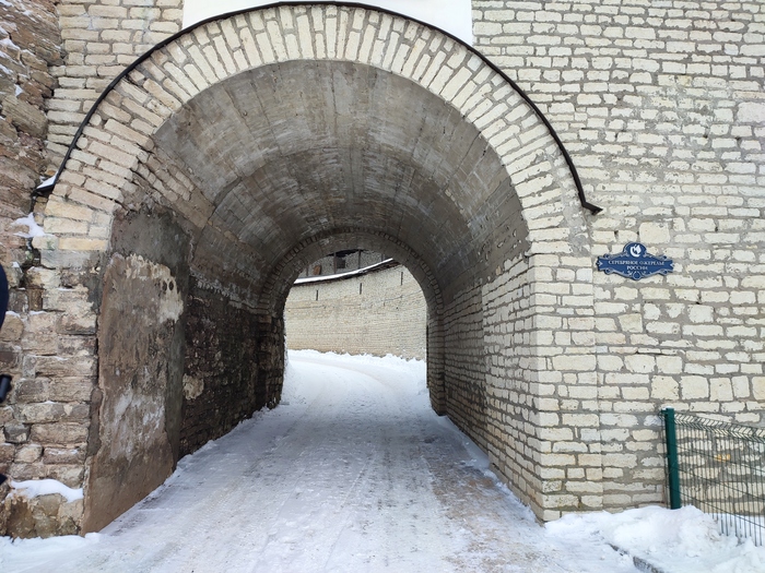 Первые два дня мы гуляли по городу, регулярно натыкаясь на части стены, разбросанные по Пскову. В одной из таких частей сделано кафе. Внутри не были, но смотрится необычно.
