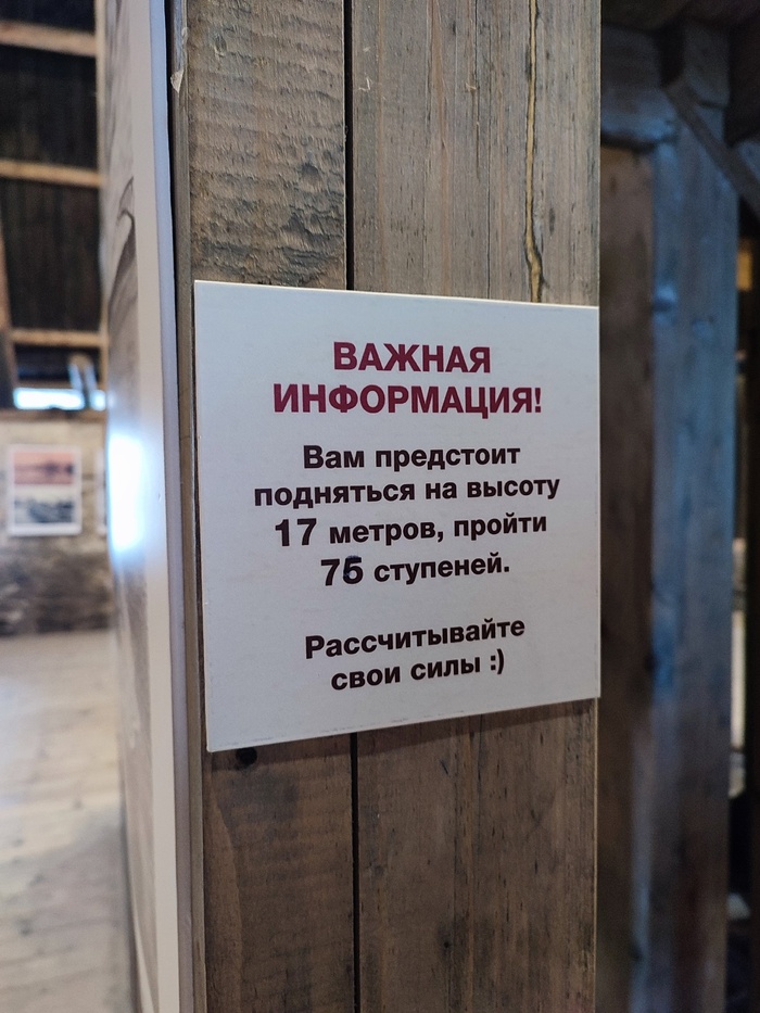 За отдельную плату(150 рублей для взрослых, 100 - для студентов) можно взобраться на смотровую площадку Власьевской башни. У лестницы встречает вот такая табличка: