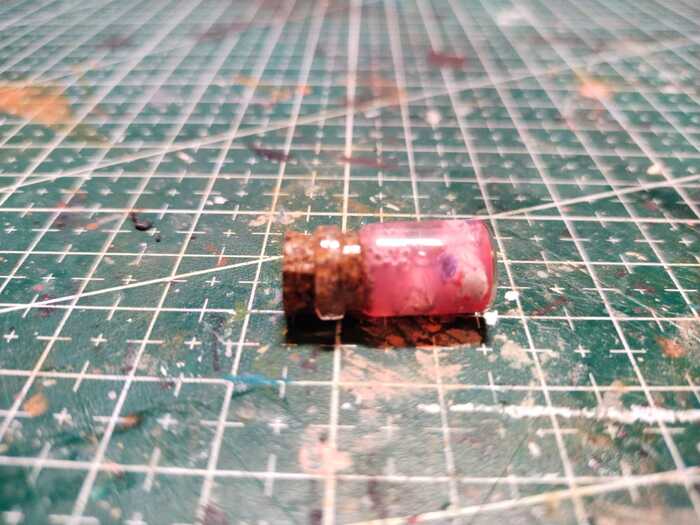 Диорама недолжна быть грустной, а потому становимся профессиональными дизайнерами интерьера орковских пещер и делаем декор. Сначала сделал банку с глазами. Сам уже не помню когда её купил, но в этот проект идеально вписалась. Глазики слепил из глины и покрасил, в банку залил немного подкрашенную воду, типа маринад. Полку сделал из спичек, в начале прошёлся проливкой, чтоб затемнить а потом прошёлся телесным, чтобы состарить. Мне показалось что полки с банкой маловато, и сделал топорик. Рукоять красил также как и полку, а больше в неё интересного и нет.