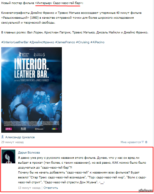 4 InForcer Действительно весело 11 лет назад Прокатчики, остановитесь! Вы уже не видите берегов! ВКонтакте Комментарии Перевод Фильмы Садо-мазо-гей