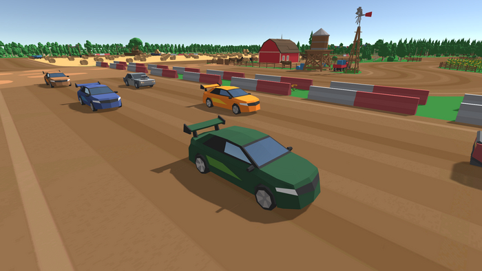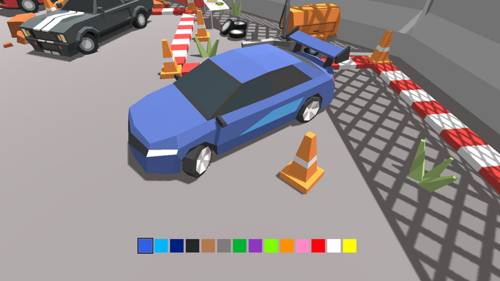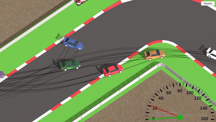 За два вечера я сделал физику машин и искусственный интеллект ботов. Так выглядела игра через два дня разработки: