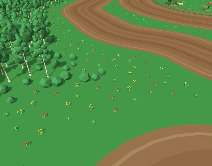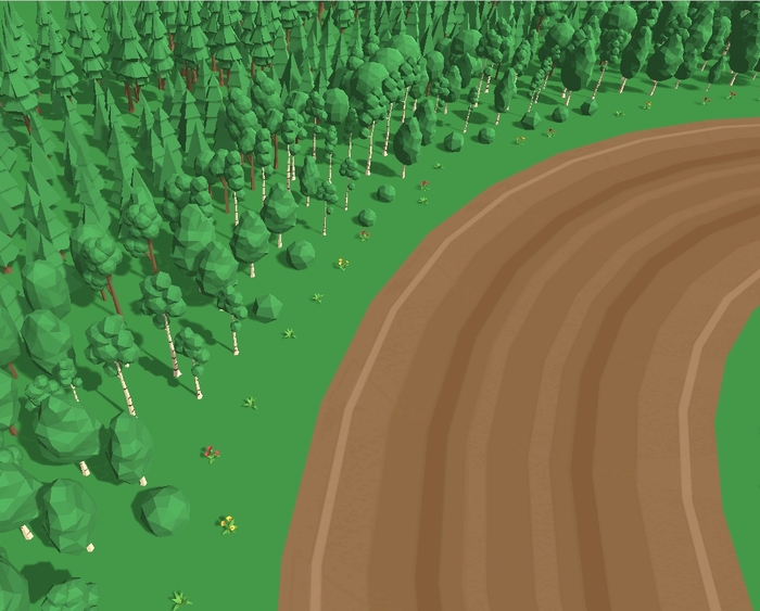 Попробовал я собрать лес вручную, но получилось долго и некрасиво. Тогда я вспомнил про биоценозы и решил смоделировать их, для автоматической генерации леса. Результат такой генерации на прикрепленных картинках: