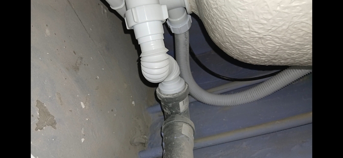 Само исполнение ванны — акриловая. Слов нет, есть маты и куча вопросов. Почему нет рамы, что за провод болтается (сразу не уточнил), что это за шляпа вообще в принципе 🤔 ванна стоит на кирпичах и растворе..