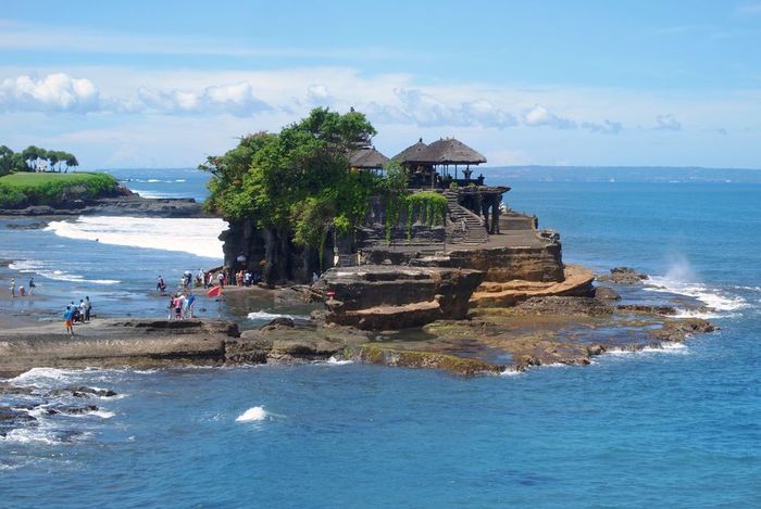 Храм Танах Лот – словно мираж, возникший на гребне волны, словно драгоценный камень, вынесенный из глубин моря. Священник, пришедший сюда в конце XV в. из королевства Маджапахит на Яве, Хьянг Нирартха, увидев прекрасный островок, омываемый волнами, остановился здесь со своими последователями, и решил основать небольшой храм, чтобы почтить богиню моря. Название «танах лот» - так и переводится «земля среди моря». Пятиярусный храм посвящён богине моря, а меньший, трехъярусный храм посвящён проповеднику Нирартха. После того, как на протяжении веков храм Танах Лот был под угрозой разрушения, в конце ХХ в. правительство выделило необходимые средства, чтобы восстановить храм в его прежнем великолепии и укрепить почву небольшого островка, на котором храм установлен. Во время прилива, участок суши, где находится храм, полностью окружён водами моря, а когда сильный отлив, то можно пройти к храму по небольшой тропинке. Когда воды стихают, хоть это бывает редко, так как этот участок моря открыт всем ветрам, изящные силуэты храмов и причудливые формы скалистых берегов отражаются в водах моря.