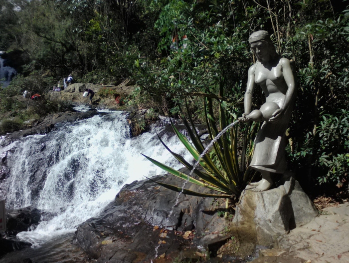 Недалеко от пруда, образованного первым стоком водопада, находится современная скульптура местной девушки из горной народности, которая держит сосуд с водой.