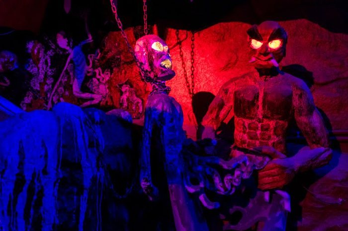 Под пагодой находятся наглядные изображения 18 уровней ада, с устрашающими скульптурными композициями и инсталляциями.