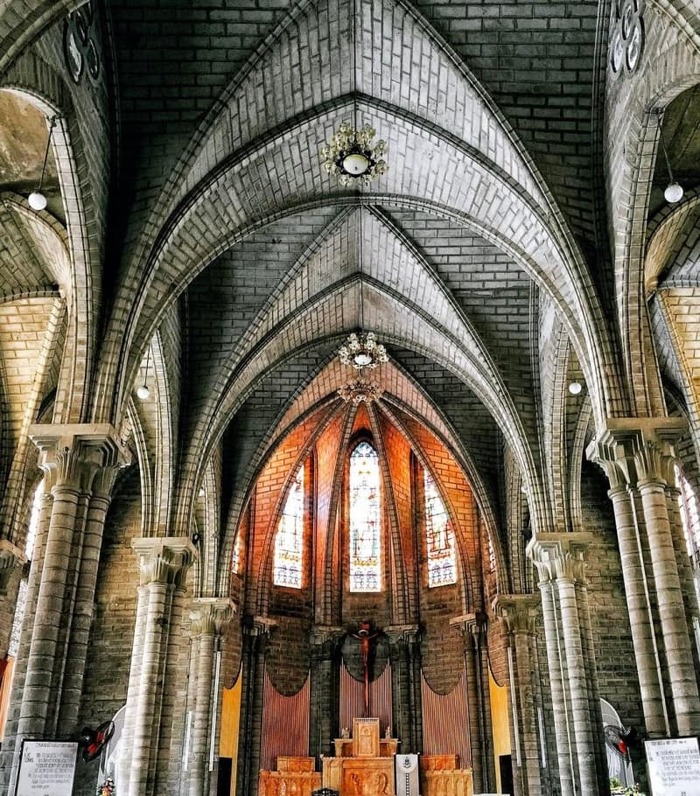 Сооружение собора началось в 1928 г. по инициативе французского священника Луи Валле (1869 – 1945). Самая высокая часть церкви – это место, где возвышается крест над колокольной башней. Высота башни 38 м. В феврале 1933 г. король Бао Дай посетил этот храм и восхищался его архитектурой, жена короля была католичкой, а он буддистом. Красотой поражают огромные витражные окна, как в лучших храмах французской готики. В солнечные дни интерьер храма мерцает разноцветными бликами, идущими от витражей.