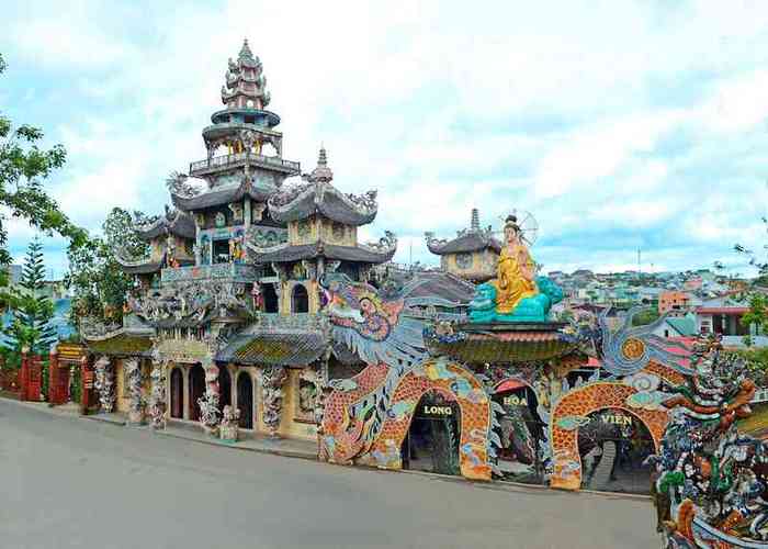 Пагода Линь Фыок – одна из самых ярких архитектурных достопримечательностей Далата. Пагода была заложена в 1949 г., а в 1952 г. строительство завершилось. Вся пагода и на фасаде, и в интерьере декорирована кусочками битого стекла и посуды, свезенной для этой цели со всего Вьетнама.