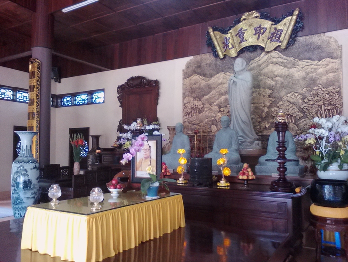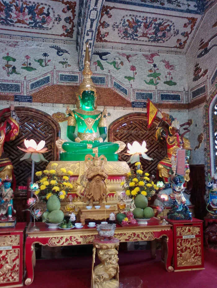 В главном церемониальном зале находится величественная статуя Будды Гаутамы, сидящего в бутоне лотоса, по бокам от него – бодхисатва Манджушри (по-вьетнамски Вантхусылой, воплощение мудрости и познания) и бодхисатва Самантабхадра (по-вьетнамски Фохиен), воплощение сострадания.