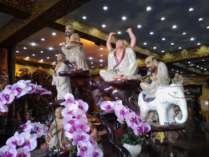 В центре алтаря главного павильона храмового комплекса Чук Лам находится скульптурное изображение Бодхидхармы, основателя дзен-буддизма, а три сидящие статуи перед ним – это Чан Нян Тонг в центре, и два выдающихся его последователя, развившие Учение, Фаплоа и Хуенкуанг.
