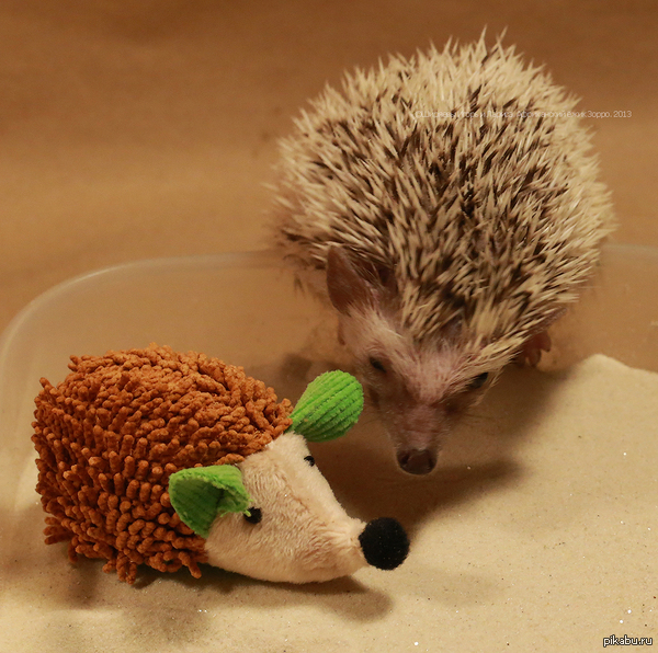 330 Interesmir Мадам недовольна :-) 11 лет назад Попетта - наша самая старшая ежиха. В клетке лежит мини-игрушка в виде ёжичка. Она каждый раз, после чистки клетки забирает ежонка и относит в гнездо. [моё] Ёжик Экзотические животные Редкий вид Африканский ёжик