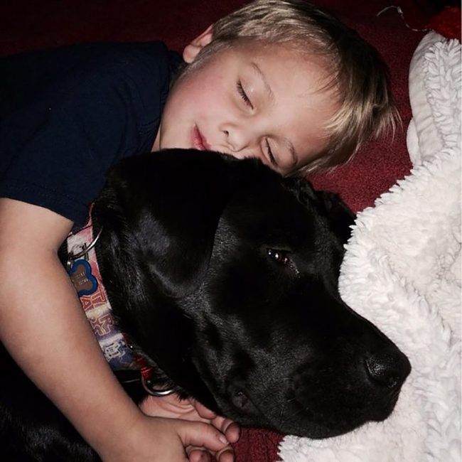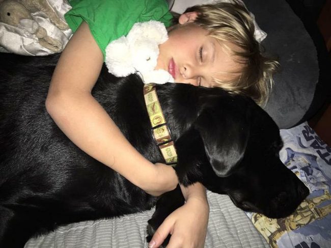 Пёс специально обучен для такой работы и ведёт себя крайне лояльно и понимающе. Он всегда готов поддержать, дать лапу, обнять или просто побыть рядом.